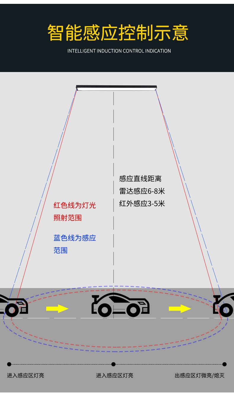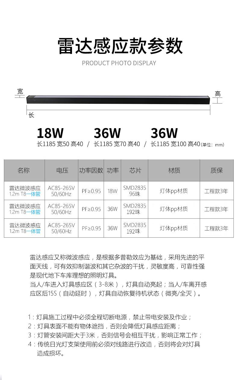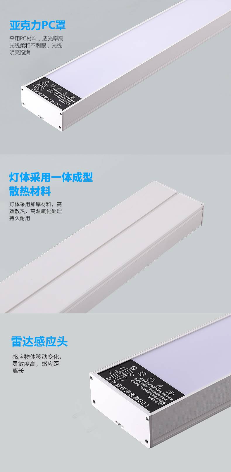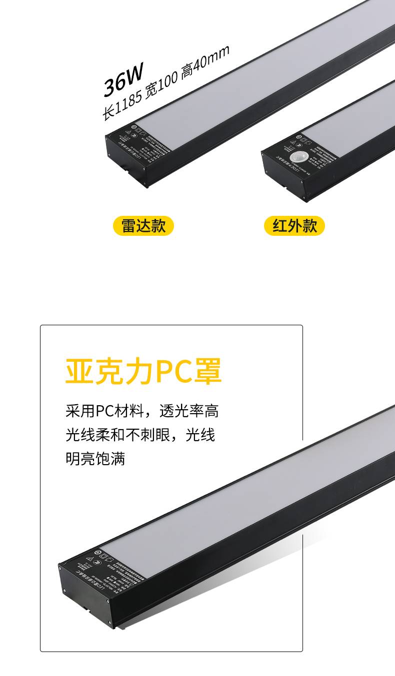 led雷达感应灯管人体红外线智能地下停车场36W线条灯过道方通灯管